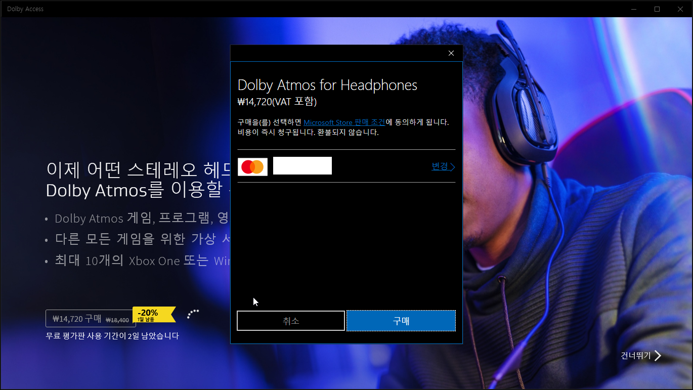 윈도 앱 중에 Dolby atmos for headphone이라는 게 지금 20% 할인 중이더라고요?
