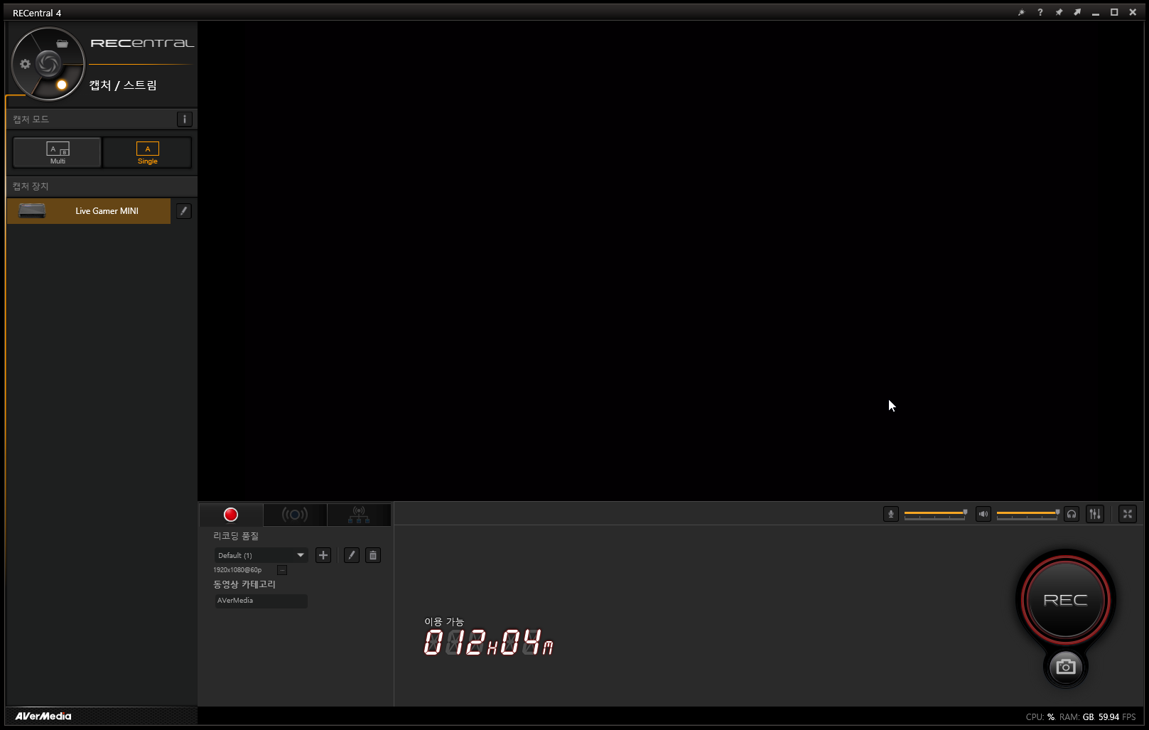 게임 화면을 녹화하는데 사용하던 녹화 프로그램이 AVerMedia RECentral4 캡처 보드 전용 녹화 프로그램? 그냥 녹화 누고 정지하면 저장된 폴더에서 영상 확인 가능한 간단한 프로그램?