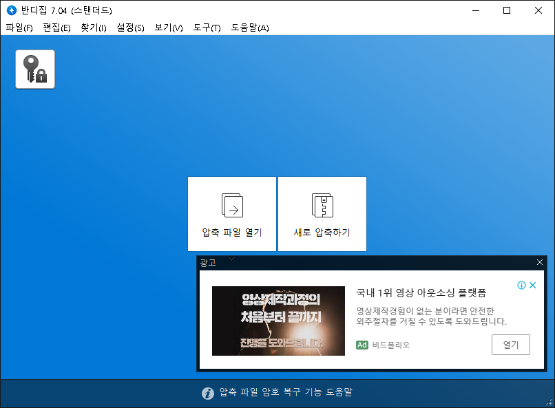 예전에 반디집을 사용할 때 위 스샷처럼 광고가 없었는데...