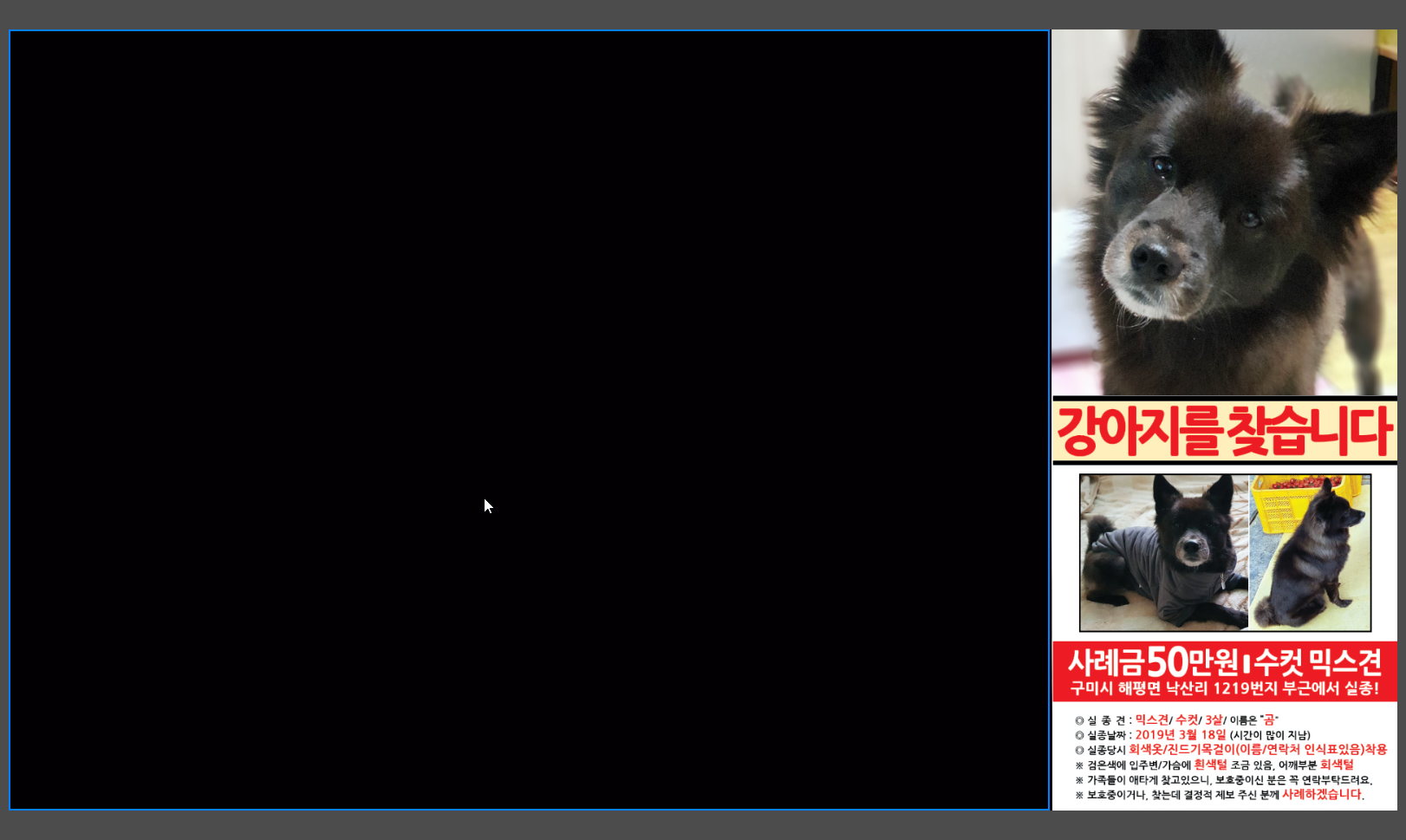 우선 위에처럼 왼쪽에 이미지를 띄워서 아들 찾는 전단지랑 사진이 나오게 해놨는데 녹화하면 이제 저 부분도 나오겠다