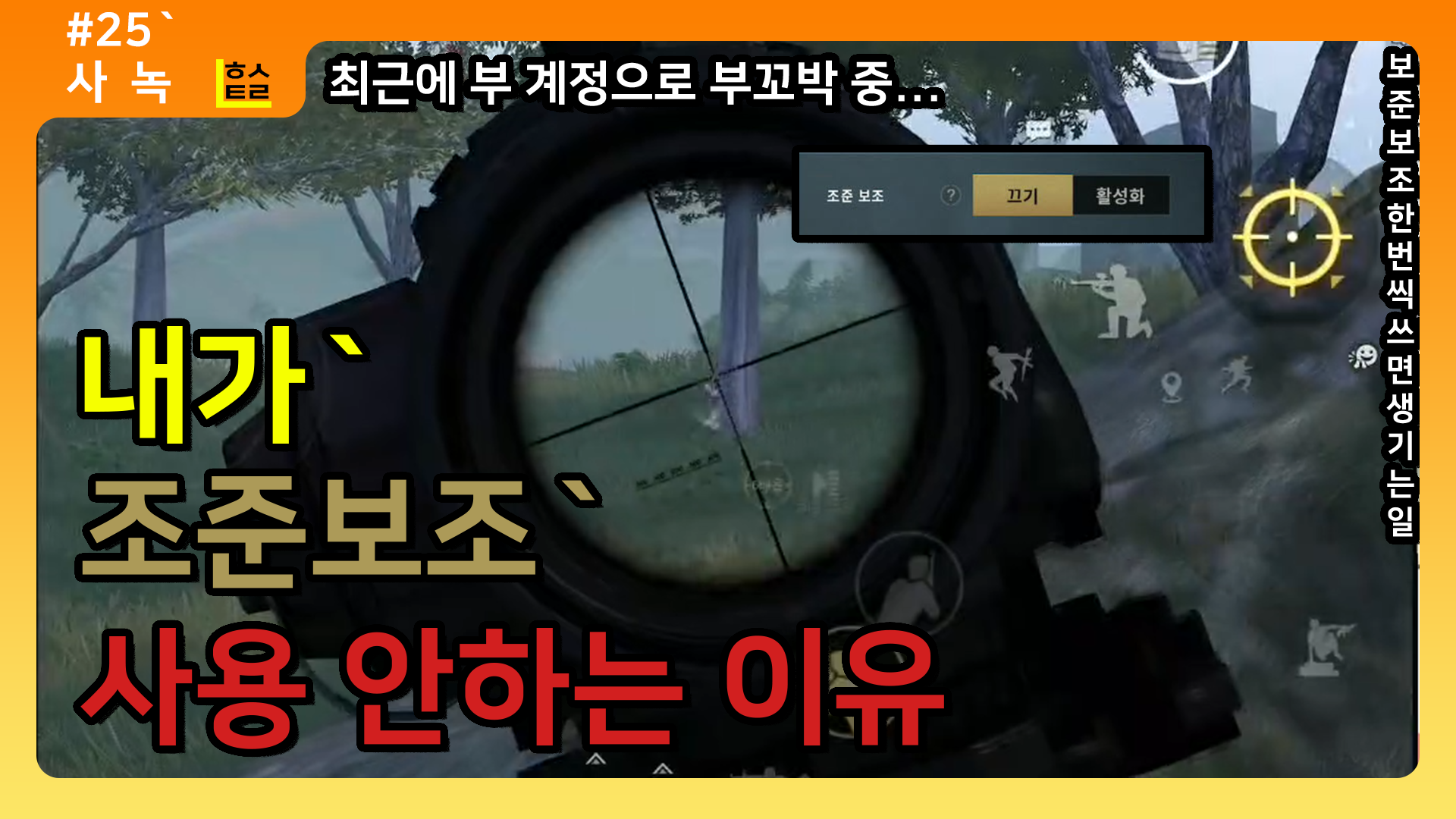 조준 보조를 OFF 해놓고 하는 모바일 배틀그라운드 유저이다