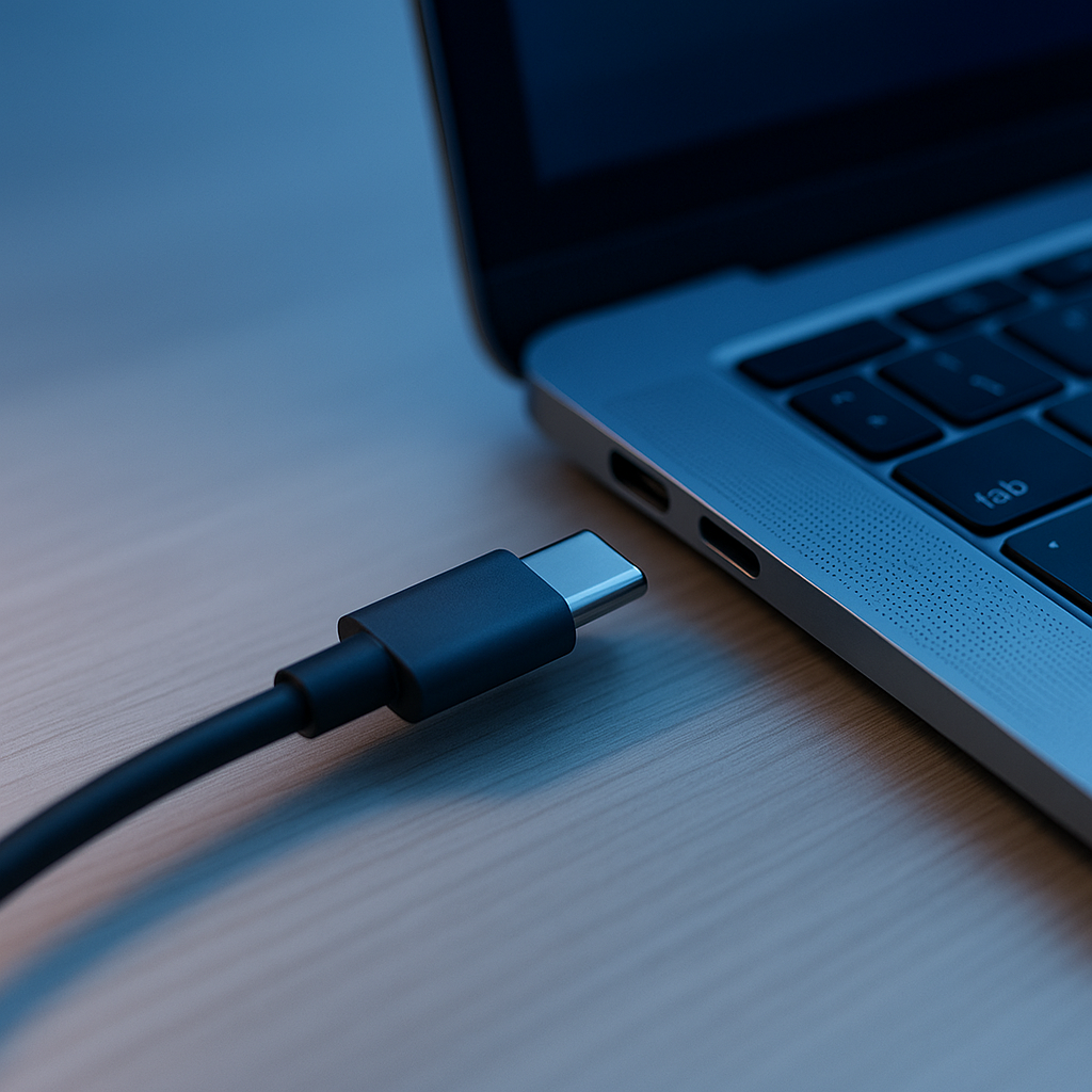 허브·독을 모두 제거하고 장치를 PC/맥 본체에 직접 연결합니다. 케이블을 교체하고, USB-A 2.0 ↔ 3.x·USB-C(Thunderbolt) 규격을 바꿔 시도합니다. 충전 전용 C 케이블(데이터 핀 없음)이나 e-마커 미탑재 저가 케이블은 인식 실패의 주범입니다. 노트북 양쪽 포트(컨트롤러 상이)가 다르면 반대편 포트도 시도해 보십시오.