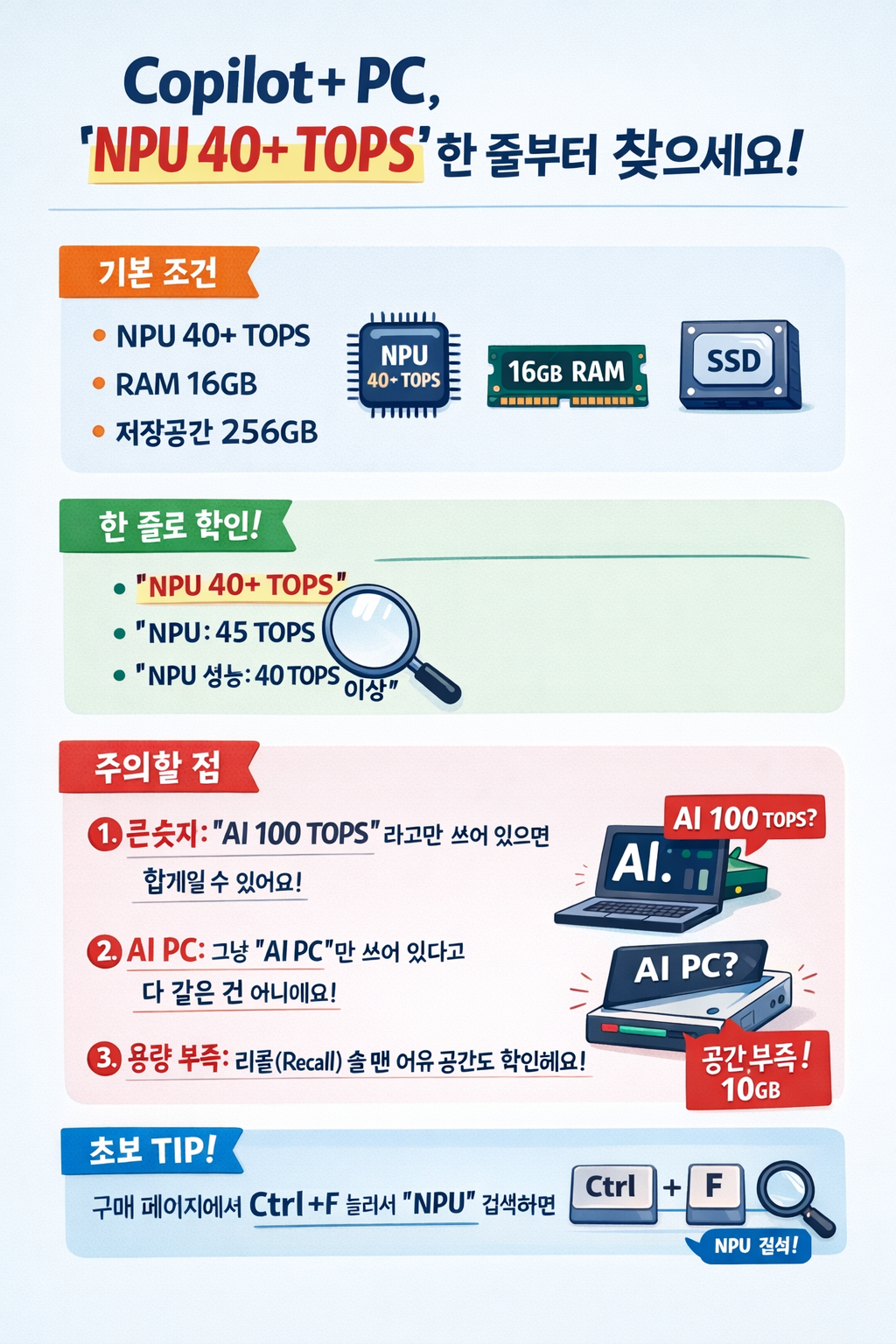 Copilot+ PC 스펙표 읽는 법: “NPU 40+ TOPS” 한 줄로 거르세요